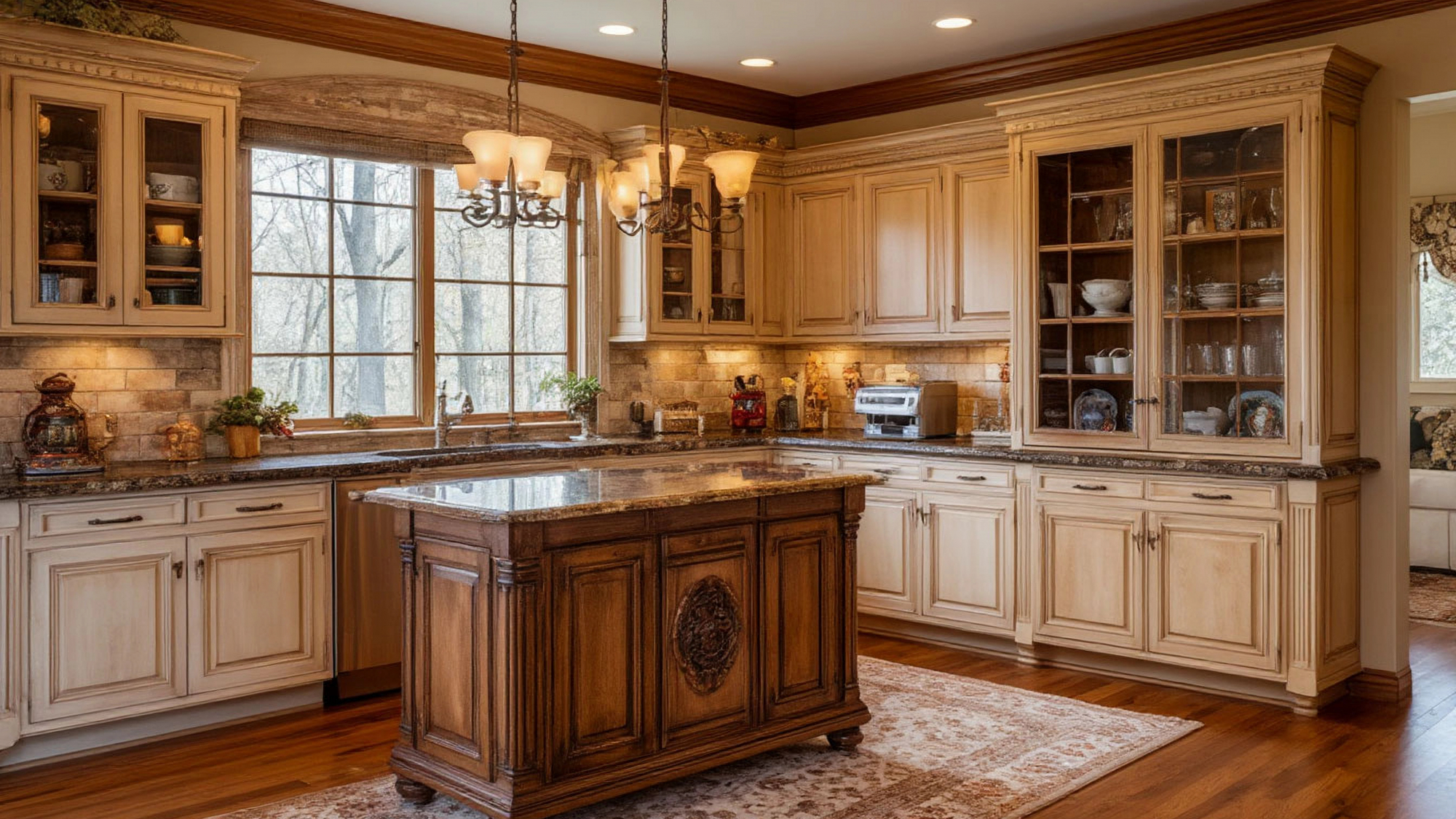Декоративные элементы буфета придают кухне характер и индивидуальность. Стеклянные вставки, резные детали, гармоничная отделка фасадов создают интерьер, в котором каждая деталь продумана до мелочей. Светлые тона фасадов подчёркивают красоту материалов и делают интерьер лёгким, воздушным и уютным.
