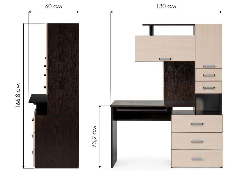 Компьютерный стол Джаз-17 левый венге / дуб молочный (60x166,8).