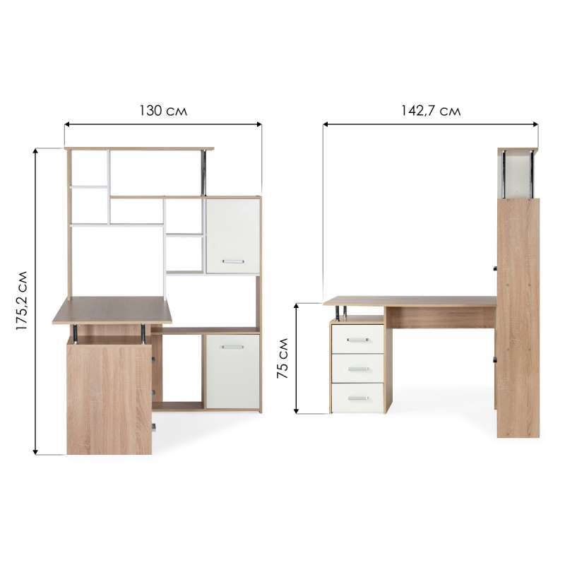 Компьютерный стол КС15 правый 142,7х130х175,2 дуб сонома (130x175,2)